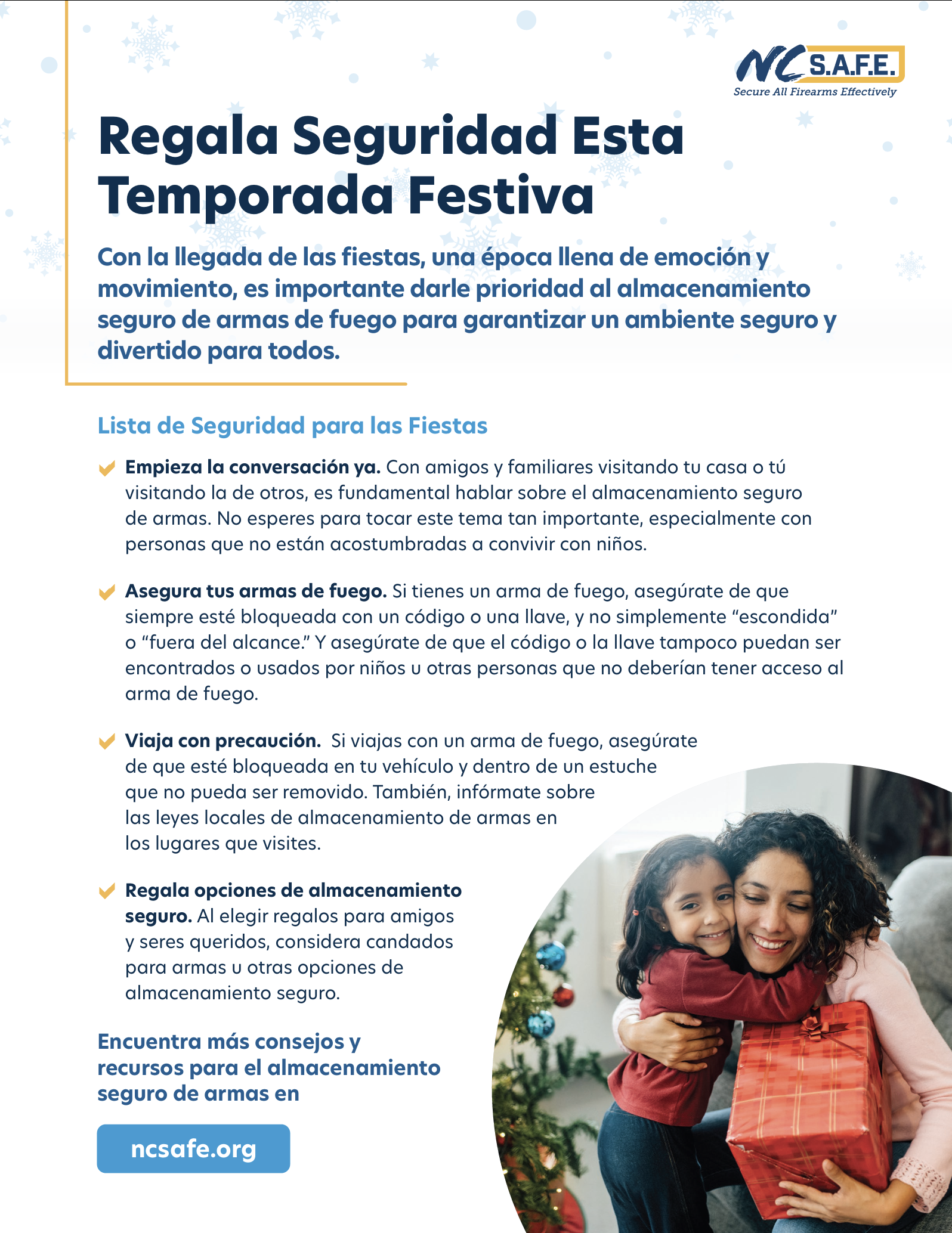 Este volante les da a los padres las herramientas para hablar abiertamente con otras familias sobre el almacenamiento seguro de armas de fuego y así ayudar a prevenir accidentes con niños. Comparte consejos para tener estas conversaciones, señales de alerta a las que hay que poner atención y pasos prácticos para ayudar a mantener a los niños seguros—en casa y cuando visitan a otros.